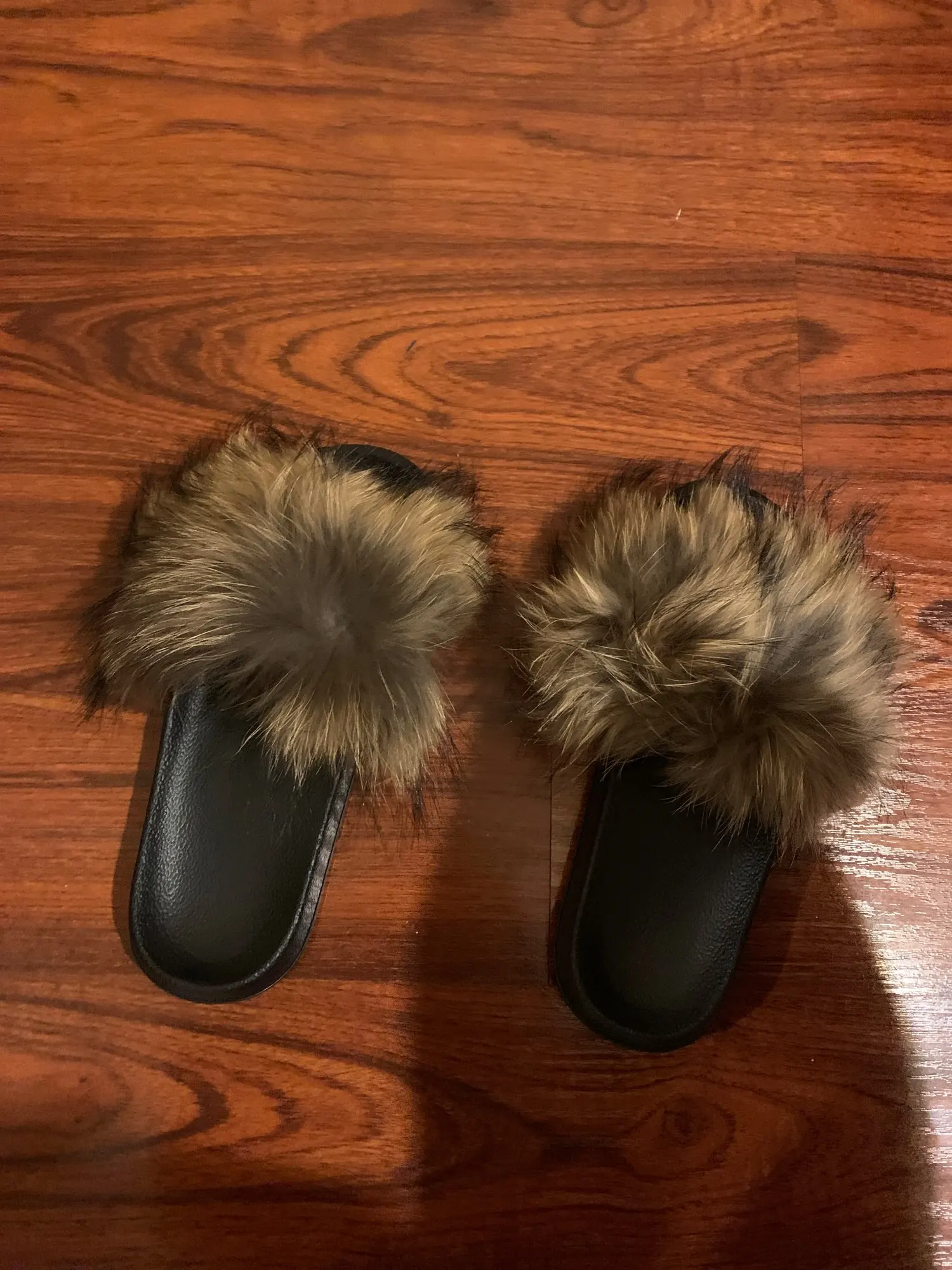 Сандалии на натуральном меху енота; Женские шлепанцы на каждый день с лисьим мехом на плоской подошве; Женские летние шлепанцы с мехом; Большой размер 45; Оптовая продажа