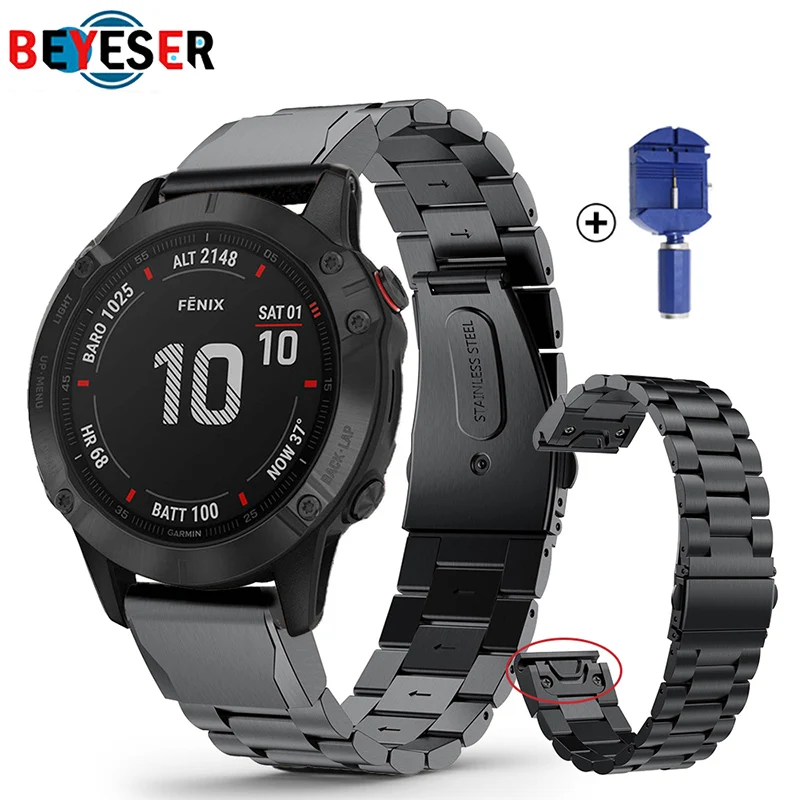 Ремешок для Garmin Fenix 6X Pro 5X 6 5 6S 5S S60 Forerunner 945, нержавеющая сталь, сменный ремешок для часов