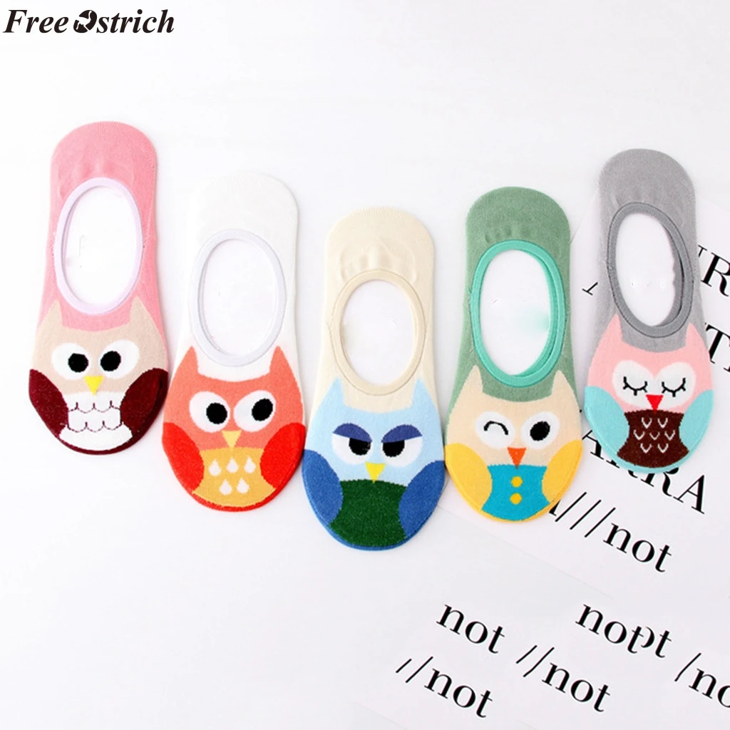 Бесплатная доставка; 1 пара женских Хлопковых Носков с изображением страуса; женские зимние носки-башмачки с принтом Совы и животных; дизайнерские корейские забавные носки в стиле Харадзюку