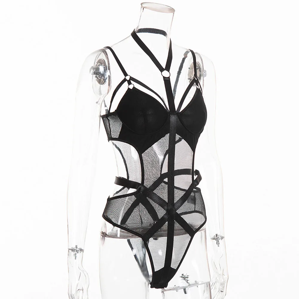 Готическая женская черная прозрачная трикотажная сетчатая сексуальная одежда для плавания цельный купальник женский купальный костюм Купальник Новый Модный Купальник с лямкой через шею