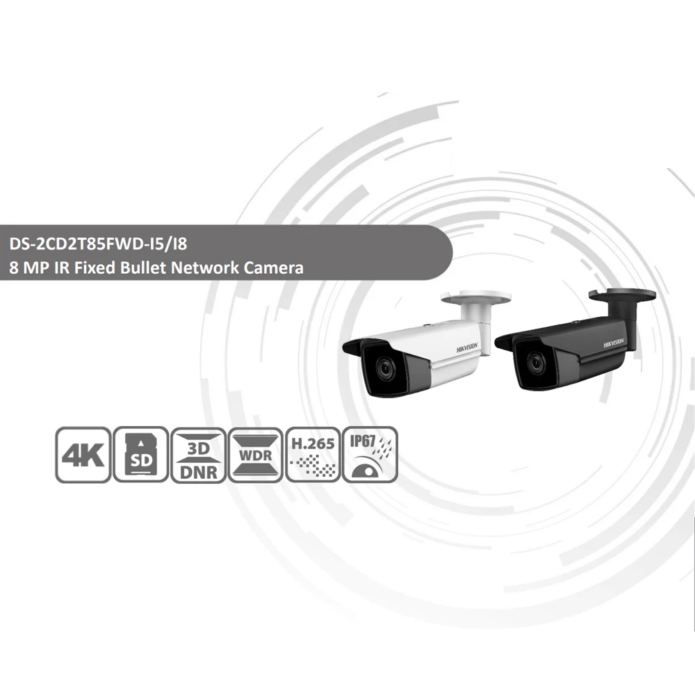 Hikvision Original DS-2CD2T85FWD-I8 8 MP (4K) IR Fixed Bullet Network Camera H.265+ POE IR Range 80m 128 GB MAX IP67 10pcs/lot