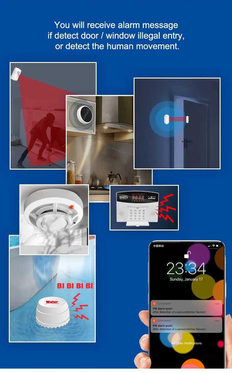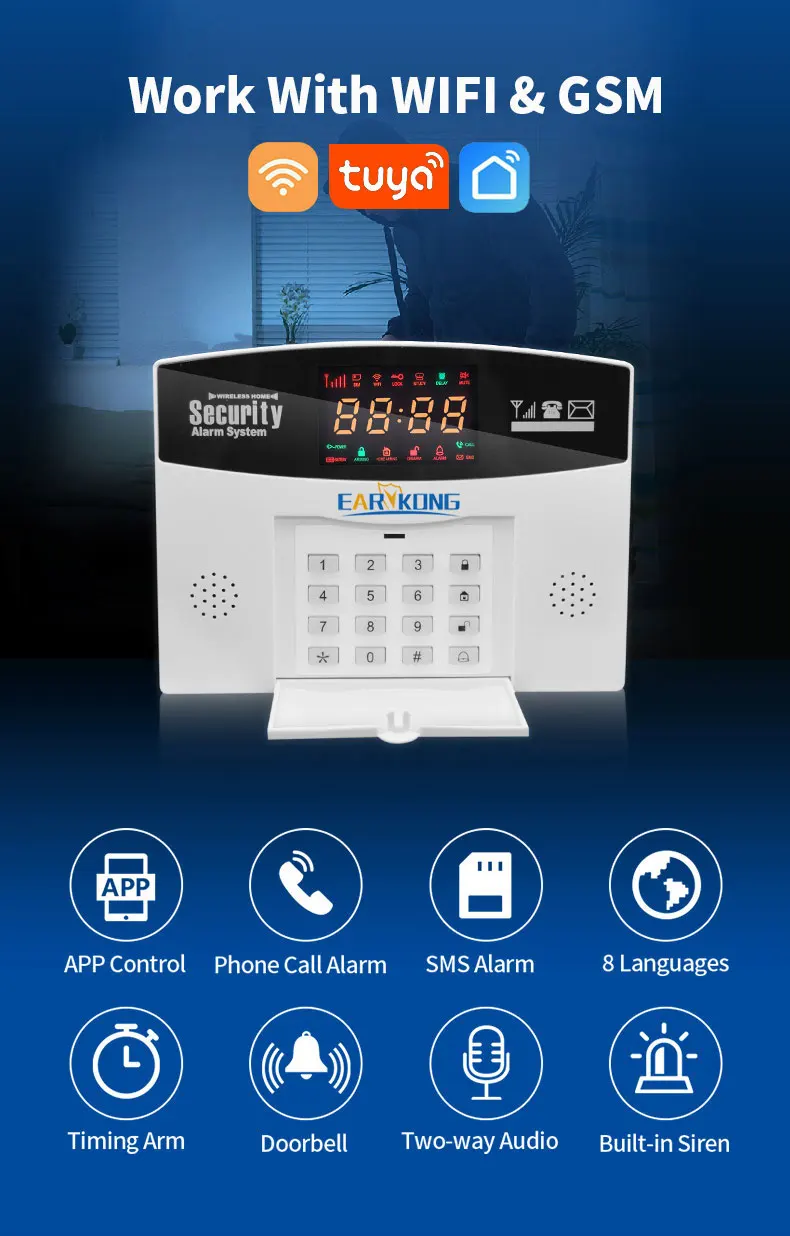 Система охранной сигнализации Tuyasmart, проводная и беспроводная, 433 МГц, Wi-Fi, GSM, 8 языков