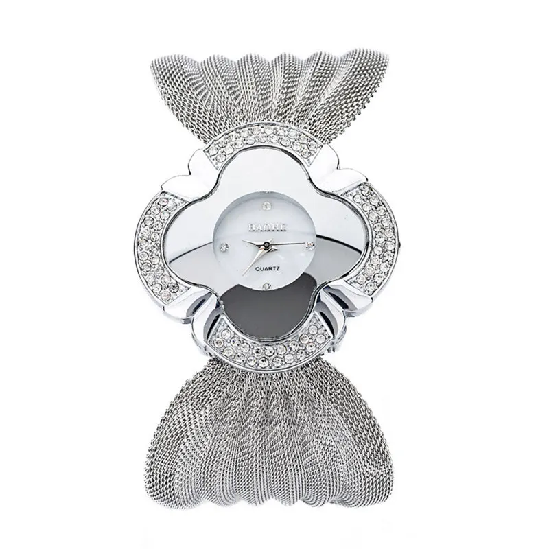 Женские кварцевые наручные часы с сетчатым ремешком и бабочкой