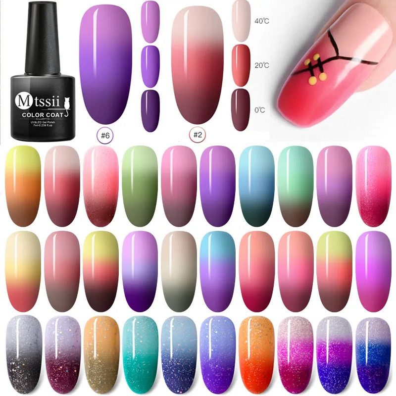 Mtssii 7 мл термальный Блестящий отмачиваемый УФ-гель голографический лак меняющий цвет Лак для температуры гель лак для ногтей Декор