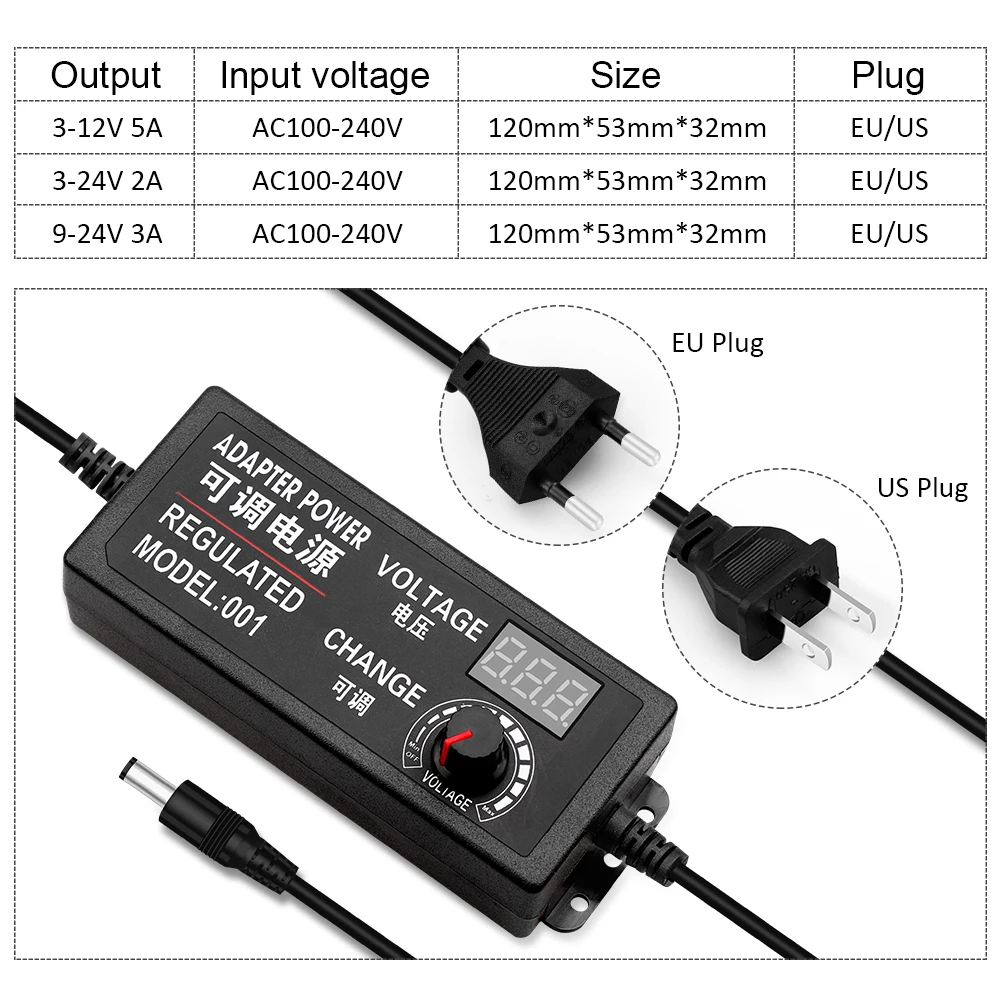 Регулируемый универсальный источник питания переменного тока в постоянный ток 3-12 в 3-24 в 9-24 В с дисплеем Регулируемый адаптер напряжения вилка стандарта ЕССША