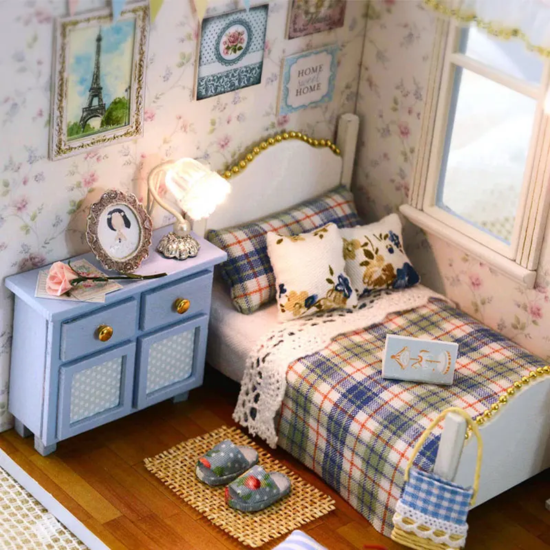 Кукольный дом, мебель сделай сам, миниатюрные 3D деревянные миниатюры, кукольный домик с пылезащитной крышкой, игрушки для детей, подарки на день рождения ручной работы
