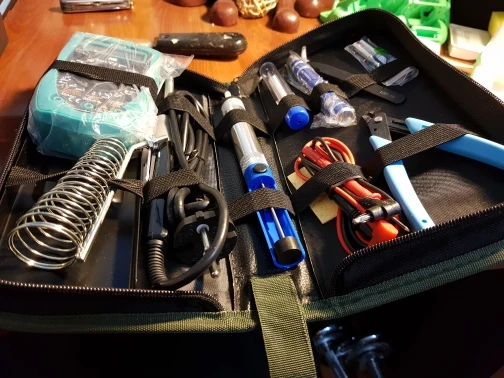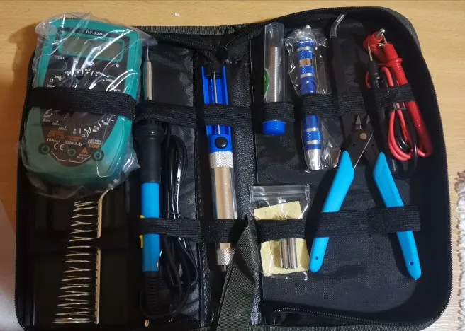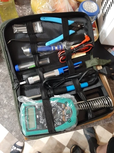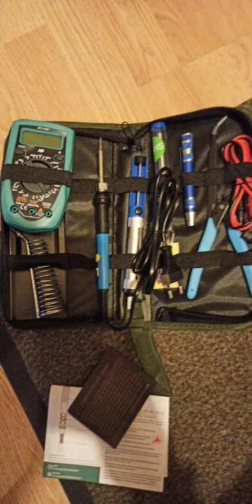 Неплохой наборчик, все работает. Паяльник, мультиметр, кусачки и пинцет довольно качественный. Удобный кейс. Батарейка к мультиметру в комплект не входит. Доставили очень быстро. Рекомендую, для дома самое то. Беру уже второй такой набор родным.