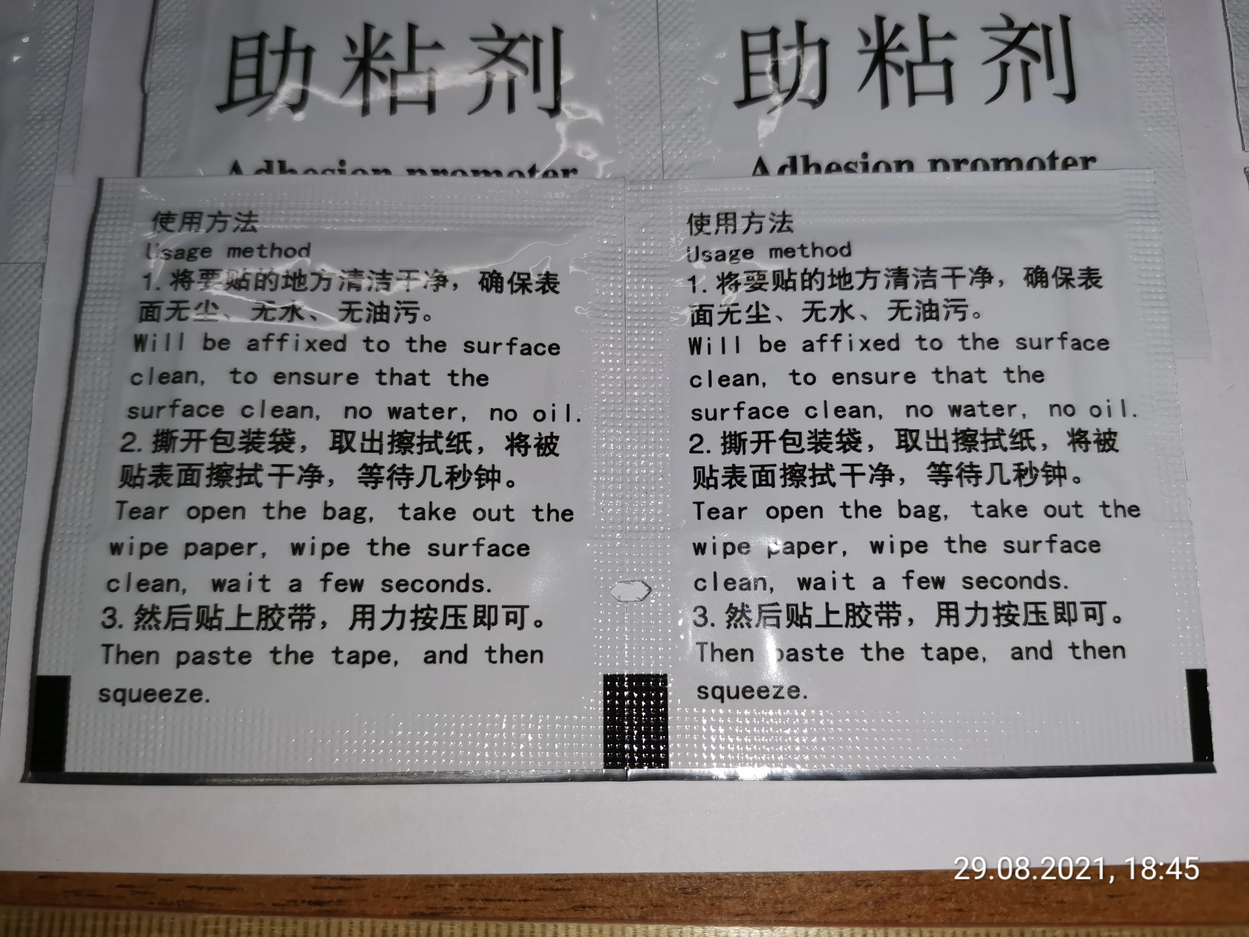Заказ (Салфетки - 3М пропитанные праймером 94EF) пришел в Ярославскую область, через 14 дней после оплаты. Я думаю, что это нормально. Трек отслеживался частично. Упаковано в пакет. Упаковано не плохо, дошло целым. Качество товара пока не могу оценить, внешне вроде все соответствует описанию. Заказывал 20 шт., пришло 21 шт., видать ещё одну положили в подарок. Будем проверять. Надеюсь в будущем сделаю ещё заказ, если товар будет соответствовать.