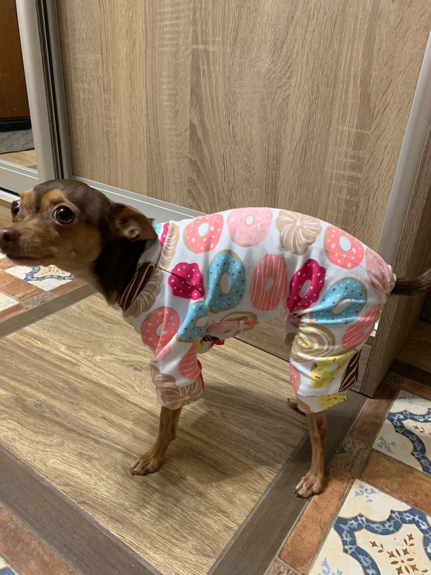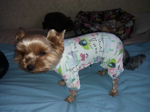 Пижамка классная,хорошая приятная ткань)На йорка 2.700кг размер L