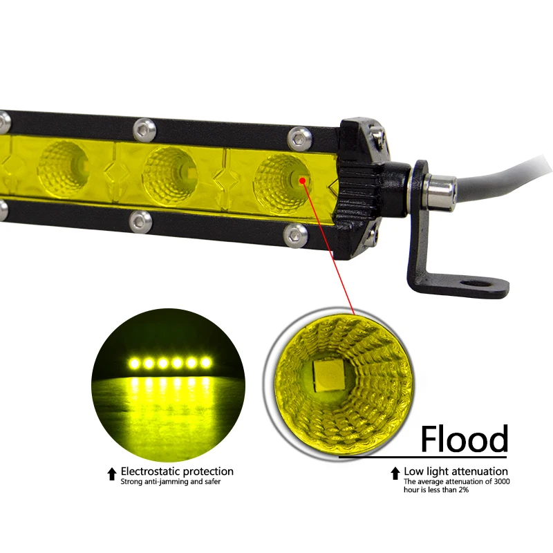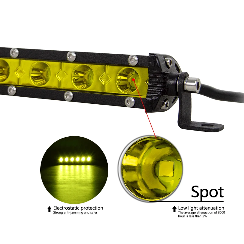 Супер тонкий светодиодный светильник Однорядный 7 "13" 19 "25" 32 "38" 30 Вт 60 Вт 90 Вт 120 Вт 180 Вт для SUV 4X4 ATV внедорожный светодиодный светильник желтый