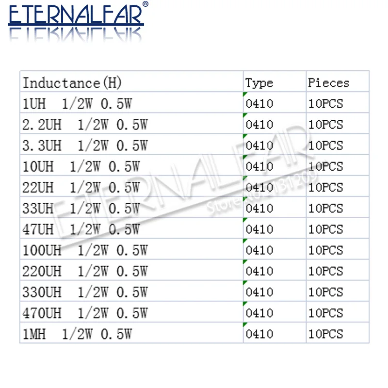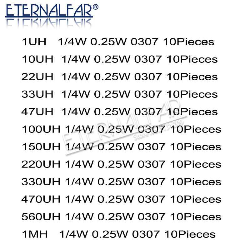 Набор цветных кольцевых индукторов, 12 значений, 0307, 14 Вт, 0,25 Вт, индукторы 1UH, 100UH, 33, 220UH, 330UH, 470uH, 1MH
