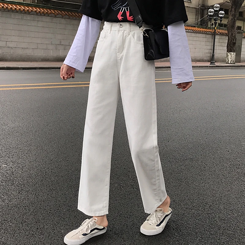 Джинсы Женские однотонные на пуговицах, прямые штаны с завышенной талией, на молнии, повседневные Элегантные брюки в стиле Харадзюку