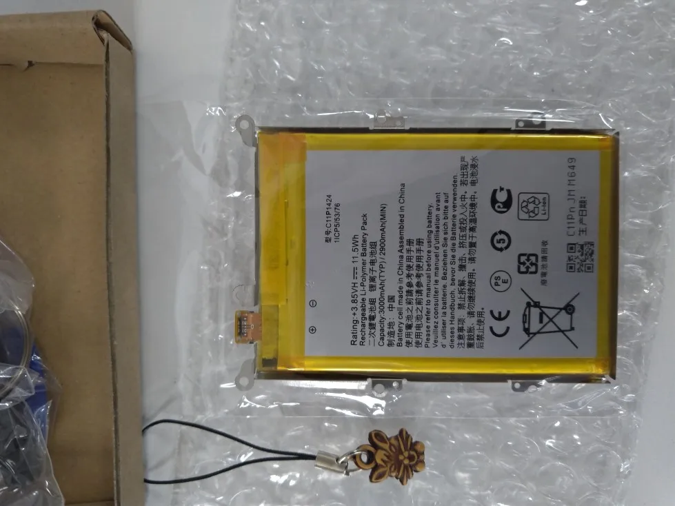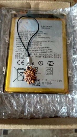 Аккумулятор соответствует описанию по внешним признакам. Когда установлю в смартфон будет окончательно ясно. Сам аккумулятор был упакован отлично - сначала в целофановый пакет, далее в картонную коробку, далее в пакет из пузырьков и далее в почтовый пузырьков пакет. Вместе с аккумулятором продавец положил пластиковый инструмент для вскрытия смартфона и маленький сувенир.