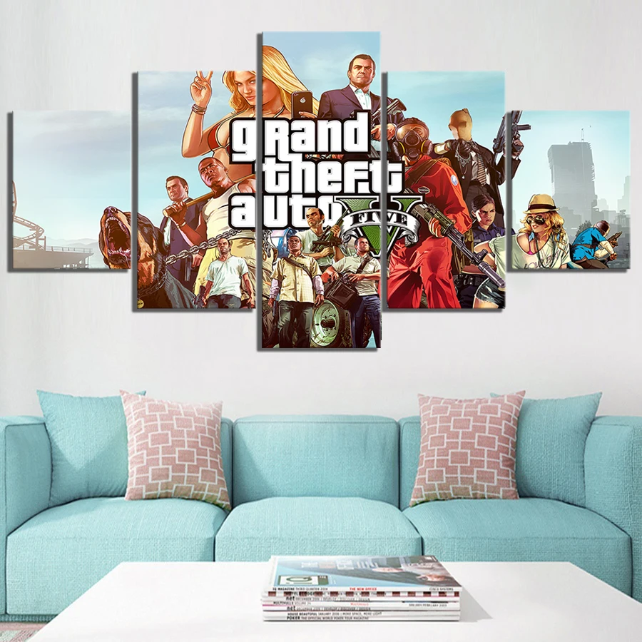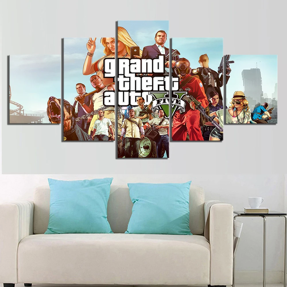 Модульные картины для видеоигр, постеры с HD-принтом, 5 панелей, Do...