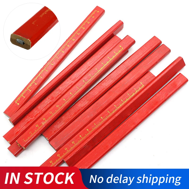 Ярко-красный цвет позволяет их легко найти, когда вы класть их вниз-а плоский профиль означает, что они также не скатываются, также легче держать во время ношения перчаток Длина: Прибл. 17,5 см/6,89" Посылка включает в себя:1/5/10 шт х плотникам карандаши