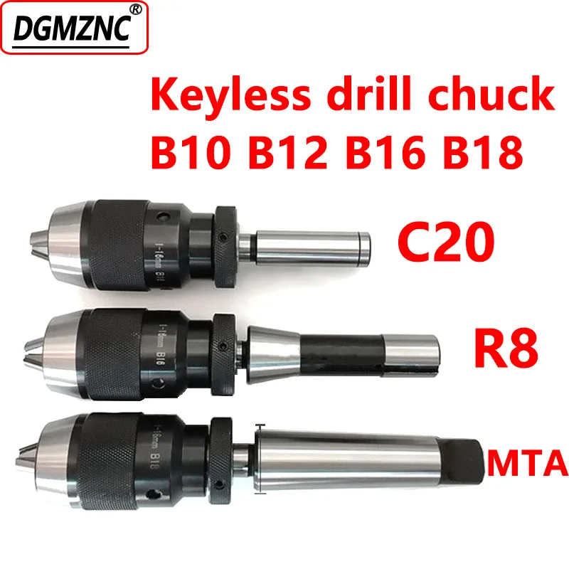 Зажимной патрон R8 C12 C16 C20 MT2 mt3 B10 B12 B16 B18, самозатягивающийся БЕСКЛЮЧЕВОЙ сверлильный патрон для сверлильного станка, 1 комплект