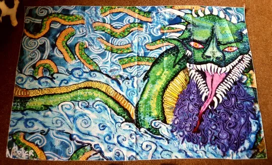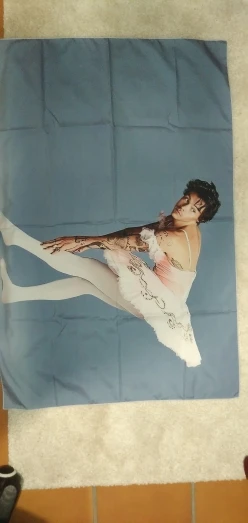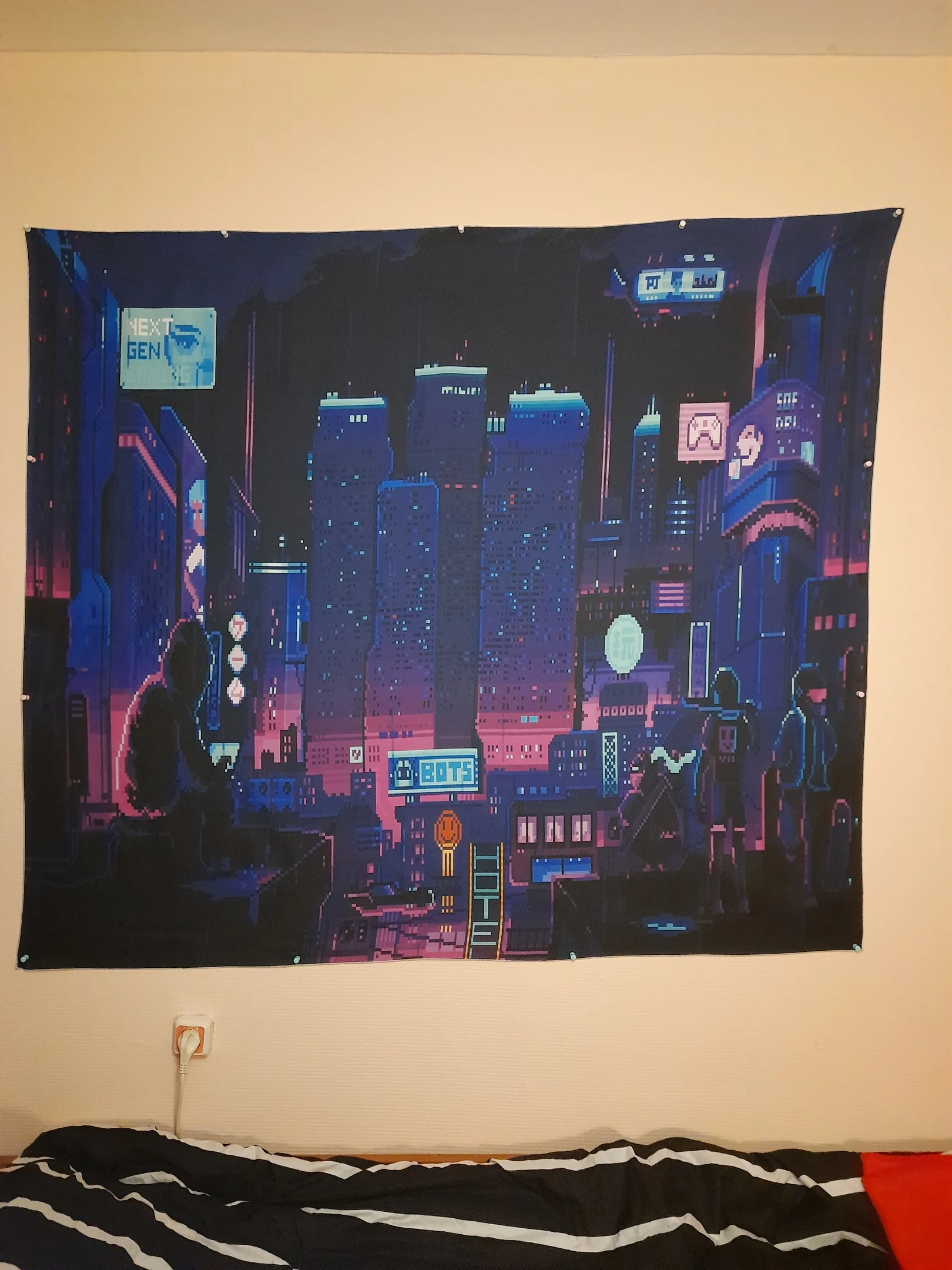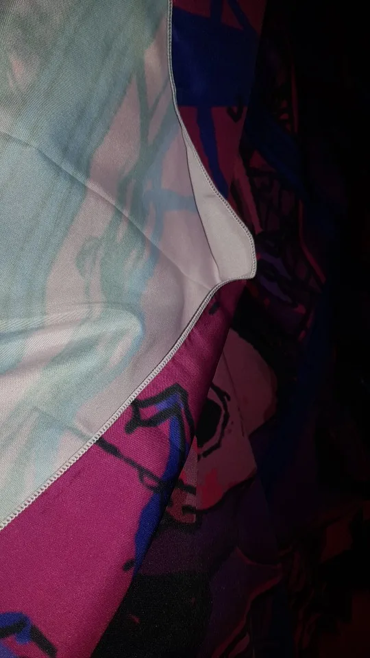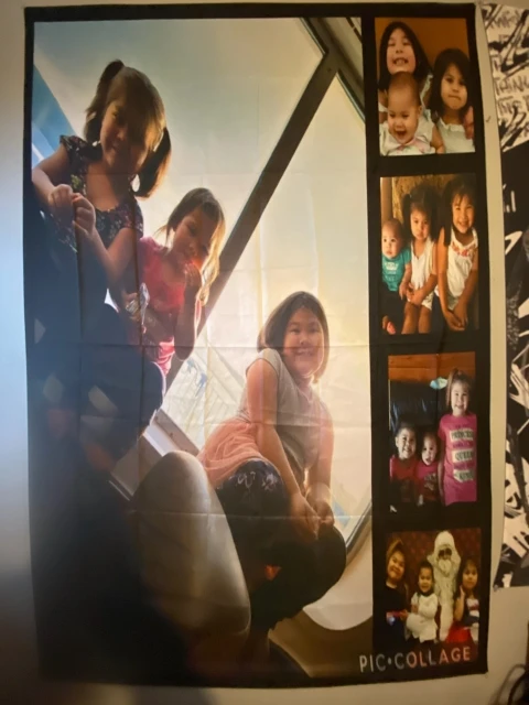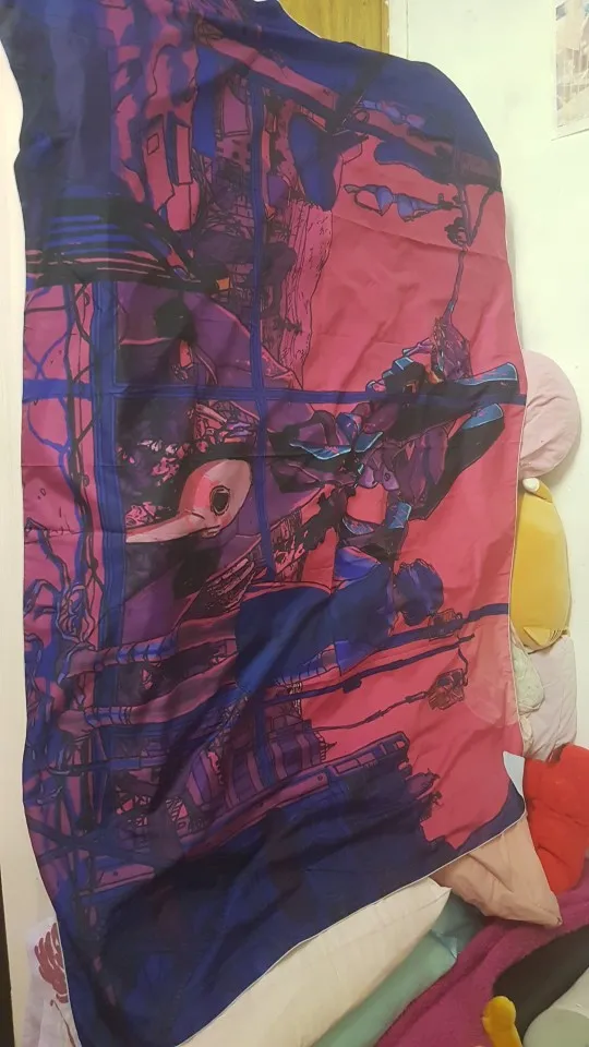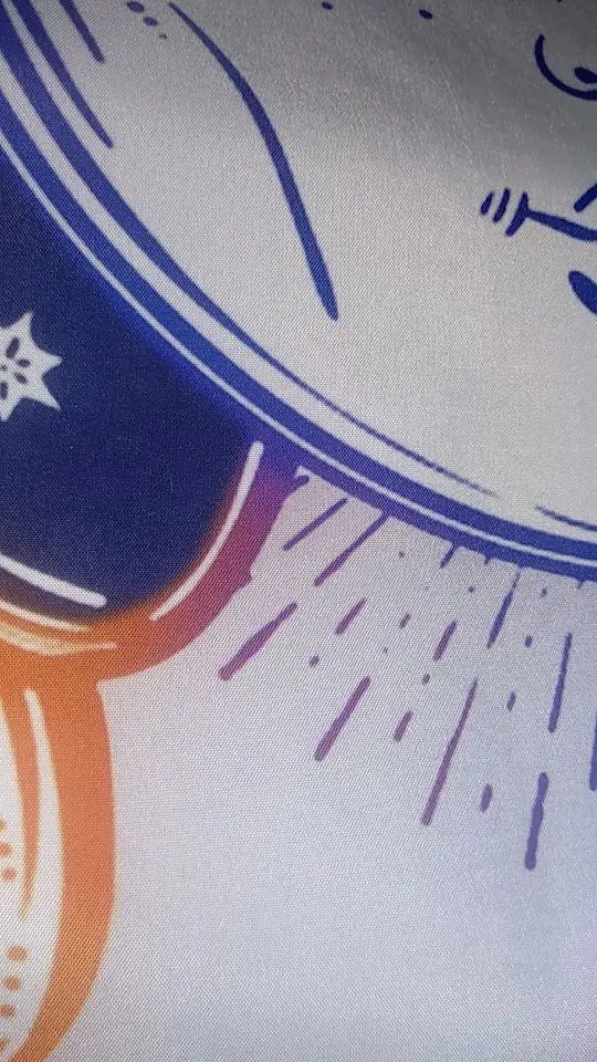 Очень красиво! Я использовал онлайн-усилитель качества фото, поэтому мое изображение не было размыто. Он прибыл через месяц, и у него было много складок, поэтому мне пришлось его гладить. Материал-тонкий полиэстер, но хорошо держит.