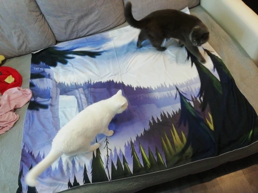 Круто, но это не фотопечать, качество как на бюджетном лазерном принтере, по голубым и синим оттенкам большой промах, в остальном похоже, файлы отправляла в sRGB. Оверлок кривой - края не ровные. Сама ткань очень тоненькая, один гобелен 90*60 весит меньше 50 гр. На стене при ярком освещении смотрится хорошо. Но! Цена, заказала 11.11 сразу 6 штук 90*60, с купоном вышло по 340 руб за штуку, за эти деньги - все очень хорошо, хотя, оверлок мог бы быть и поровнее. Продавец достаточно быстро отвечает, немного помучились с отправкой больших файлов.