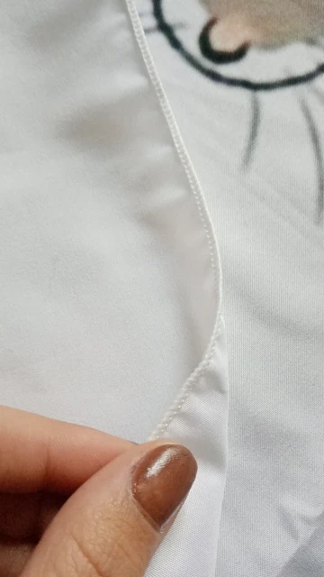 Really nice! Fabric is soft, colour is very vibrant and just like the photo i sent in, would definately reccomend the back is plain white and there is white stitching around the border The shipping was tracked and delivered quickly to australia and required a signature on delivery Seller communicated very well
