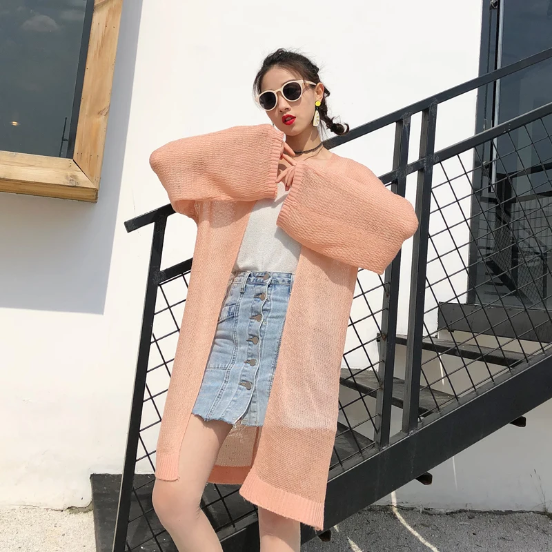 Длинный Модный летний длинный кардиган, свитера, женские тонкие вязаные свободные кардиганы с вырезами, трикотажная одежда, повседневные топы с открытым стежком