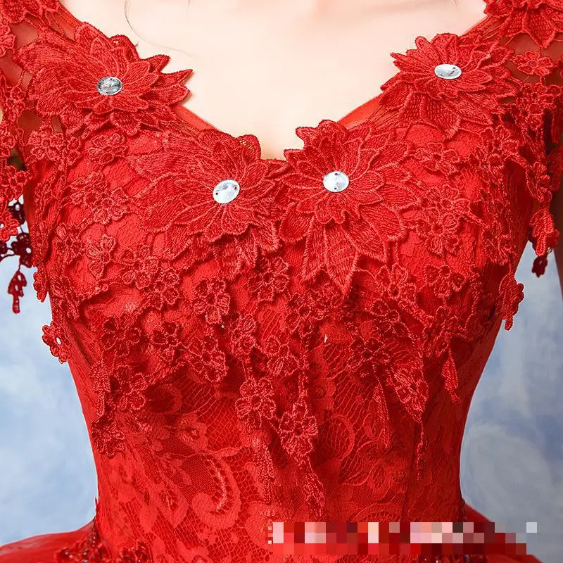 2021 свадебное платье красное бальное платье с v-образным вырезом винтажное свадебное платье с кружевной вышивкой Vestido De Noiva F