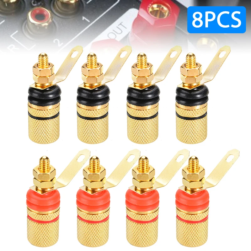 Позолоченные клеммы усилителя колонки 8 шт.лот, связующие столбы, разъемы банановых розеток, подходят для 4-миллиметрового разъема бананового штекера