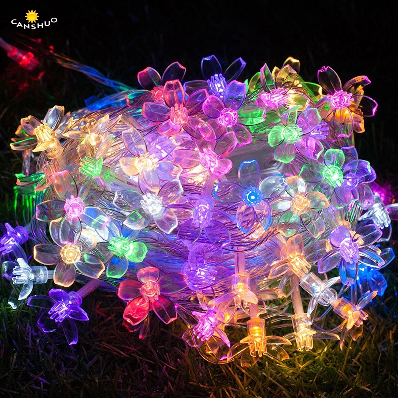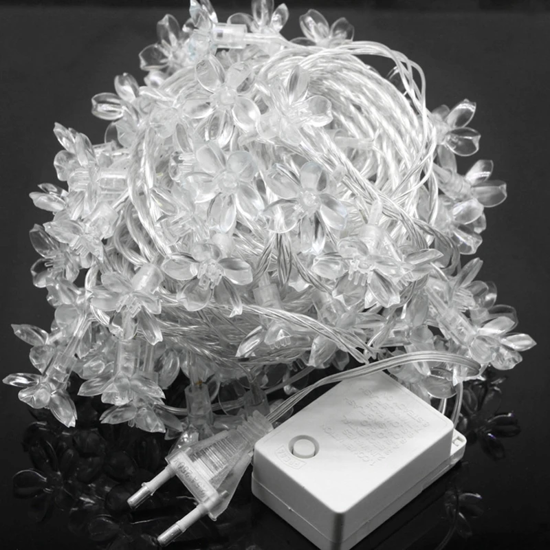 Светодиодная гирлянда с цветами вишни, уличная лампа в виде цветка персика, сакуры, свадебное Рождественское украшение, 220 В переменного тока, 10203050 м