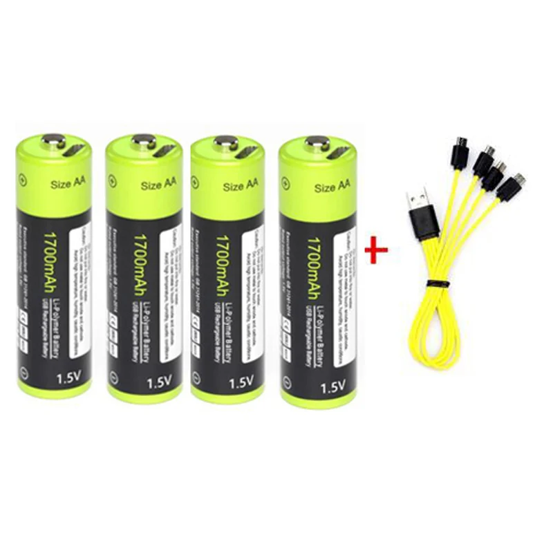 ZNTER 1,5 в AA Аккумуляторная батарея 1700 мАч USB перезаряжаемая литий-полимерная батарея Быстрая зарядка с помощью кабеля Micro USB (кабель Micro USB на ваш выбор)