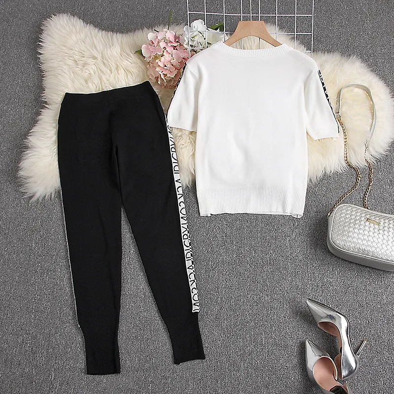 Женский трикотажный костюм ALPHALMODA, вязаный свитер с тигром и брюки-карандаш, 2 шт., трикотажный спортивный костюм с короткими рукавами на лето 2019