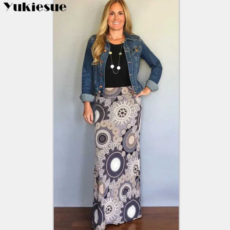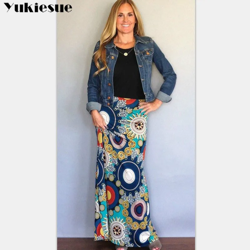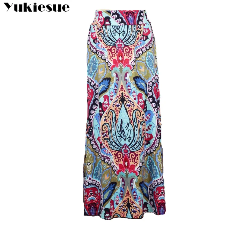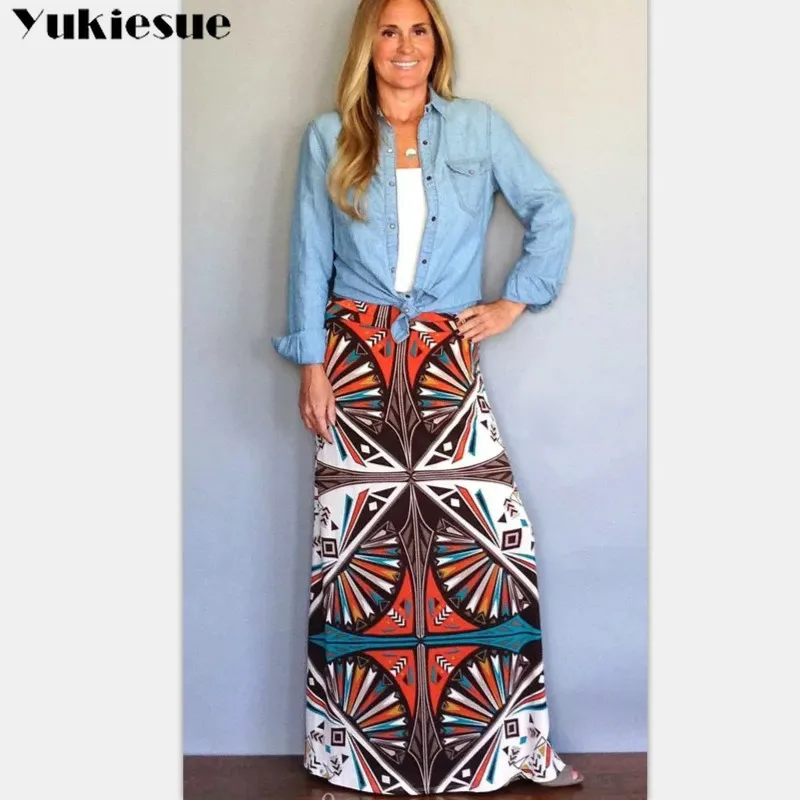 Женская юбка с высокой талией, Пляжная длинная трапециевидная юбка средней длины с принтом в стиле бохо, лето 2019