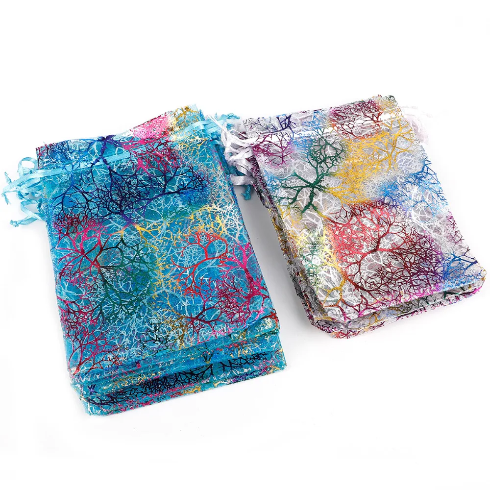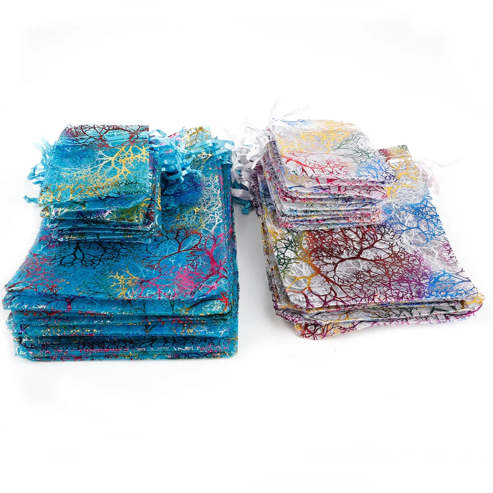 50 шт.лот 7x9 9x12 10x15 см 13x18 см сумки из органзы на шнурке белые и синие сумки для упаковки ювелирных изделий свадебные подарочные сумки Мешочки для ювелирных изделий