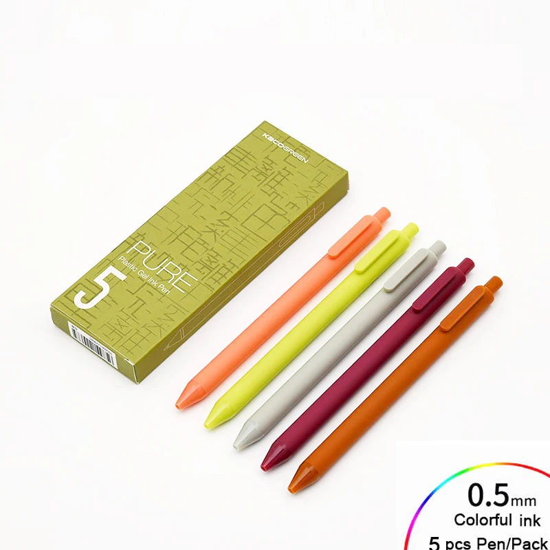 Ручка с цветными чернилами, 5шт.упак. Youpin KACO Sign, цветная шариковая ручка 0,5 мм, прочная ручка для подписи KACOGREEN, АБС-пластик, гладкие чернила