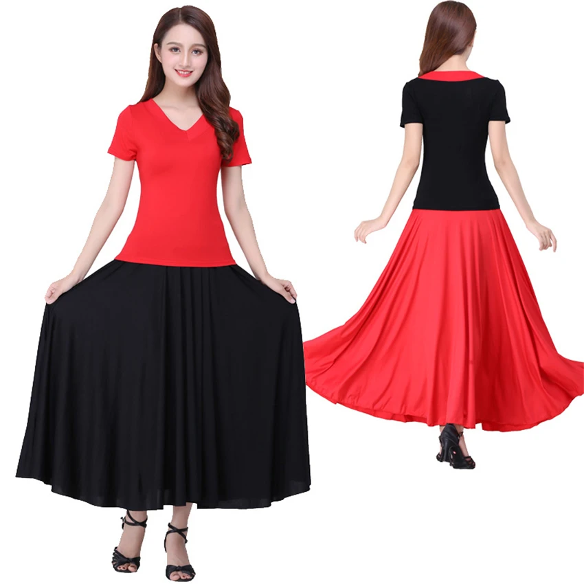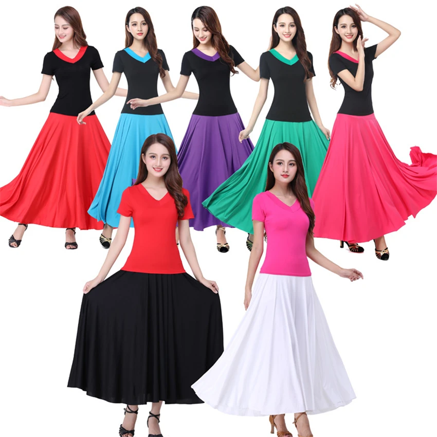 Женский карнавальный костюм фламенко, танцевальные костюмы для женщин, юбка для выступлений на сцене живота, 7 цветов, одноцветные балетные балетный зал, костюмы