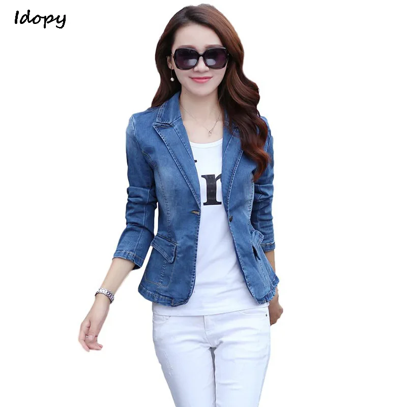 Женская джинсовая куртка Idopy, облегающая деловая винтажная верхняя одежда из денима в Корейском стиле для девушек, на осень