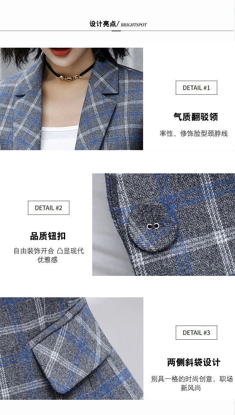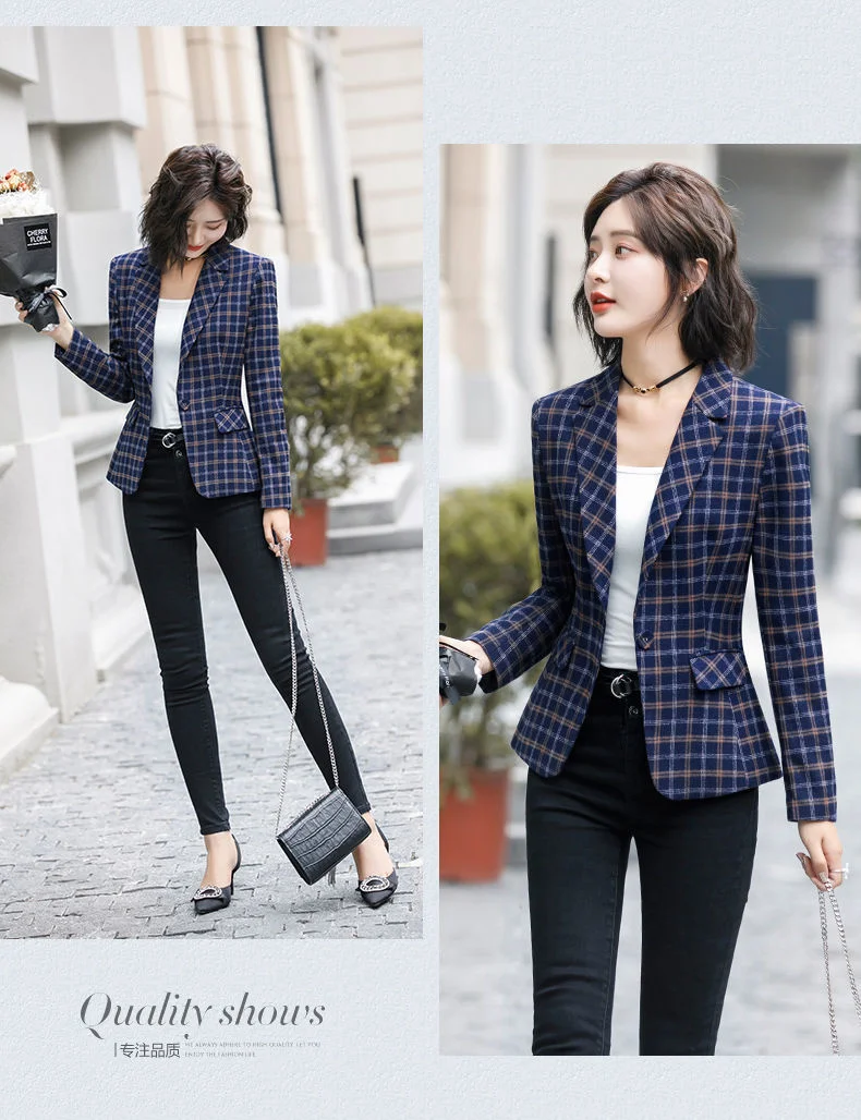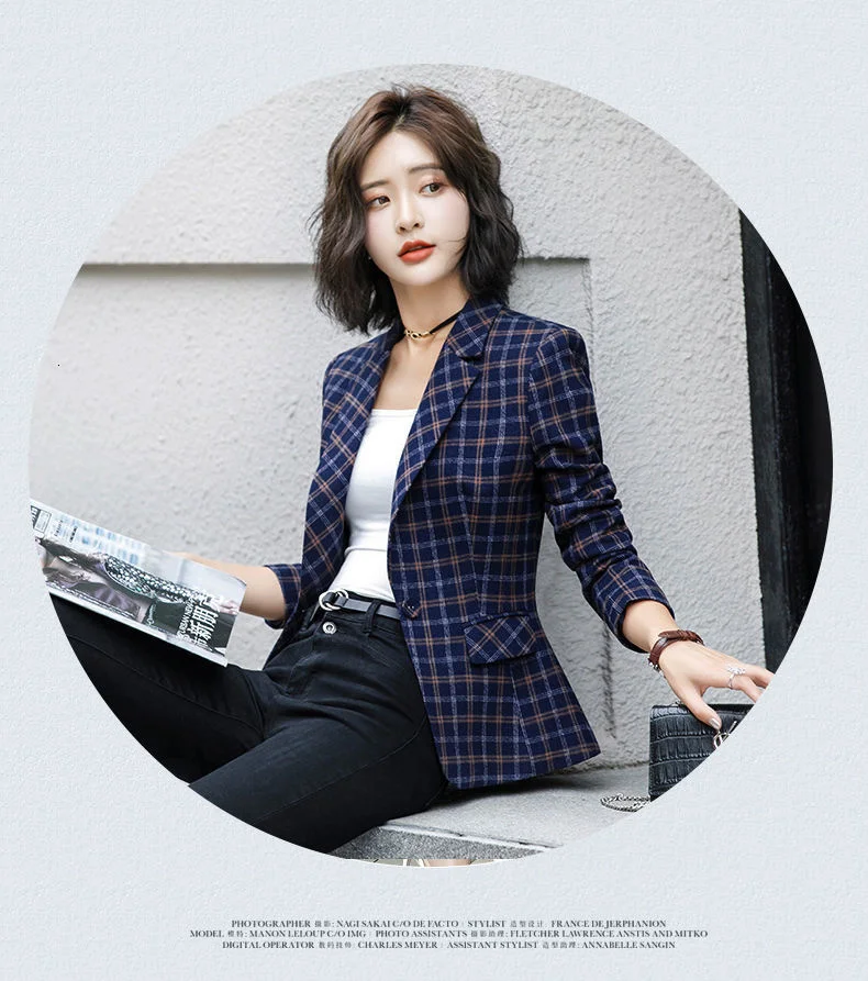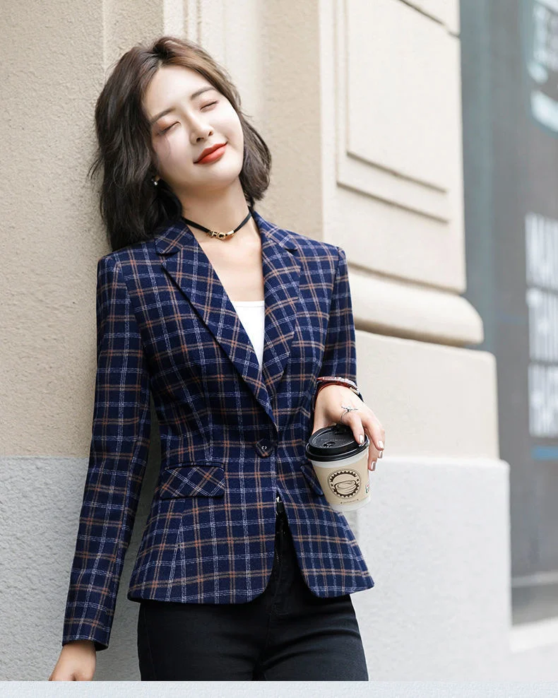 Пиджак женский клетчатый на одной пуговице, с английским воротником