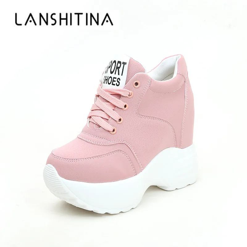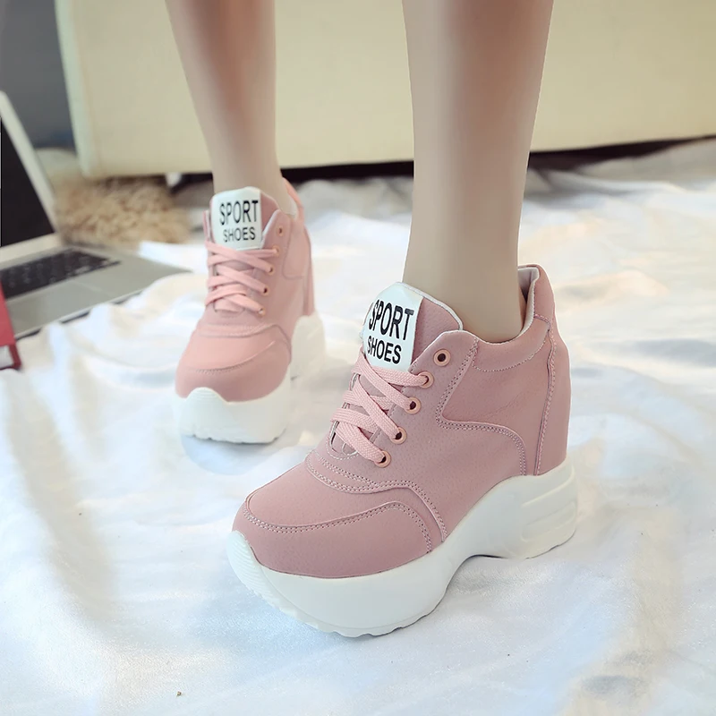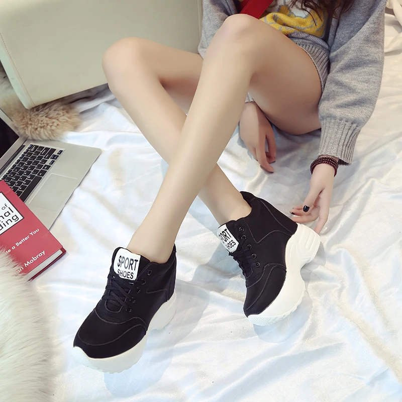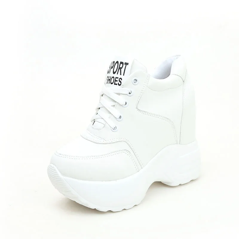 Кроссовки женские на платформе 12 см, дышащие, сетчатые, повседневные, на веснуосень, белые