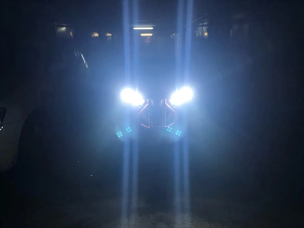 Просто отлично! Он загорается намного больше, чем фары моего MT 09 и даже больше, чем автомобиль! Я впечатлен! Первое изображение: ближний свет Второе изображение: ближний свет + ПОЛНАЯ фара Третья фотография: ближний свет + ПОЛНАЯ фара + пятно Мы четко видим разницу!