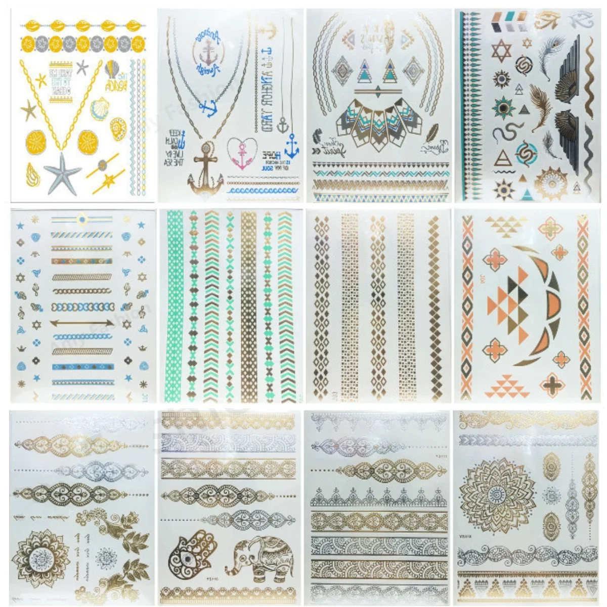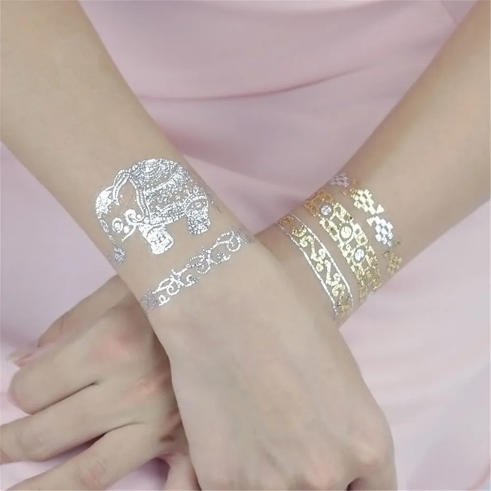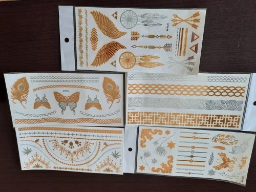 5 шт. перо ювелирные изделия Искусство Съемные металлические серебряные изделия боди татуировки Временные листья цветок наклейки случайный золотой цвет татуировки