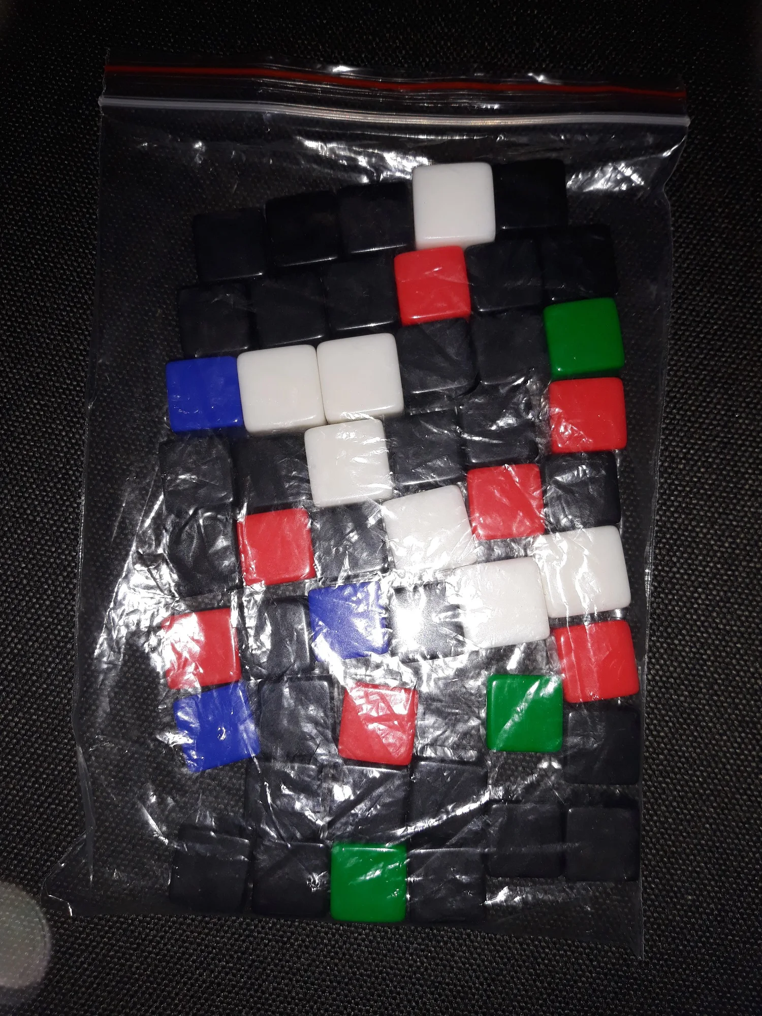 Заказал три набора черного и два набора мульти и оставил комментарий о том, какие цвета я хотел бы заказать в смешанном (7x белый, 7 xкрасный, 3 xсиний и 3 xзеленый). Количество каждого цвета, которое я получил, точно такое же, как и в комментарии (спасибо, дорогой продавец), однако все белые кости больше остальных (18 мм, не 16 мм) так что я немного путаюсь lol XD К сожалению, это не будет большой проблемой для проекта, для которого я их использую;) качество хорошее, и доставка была очень быстрой. В целом я доволен.