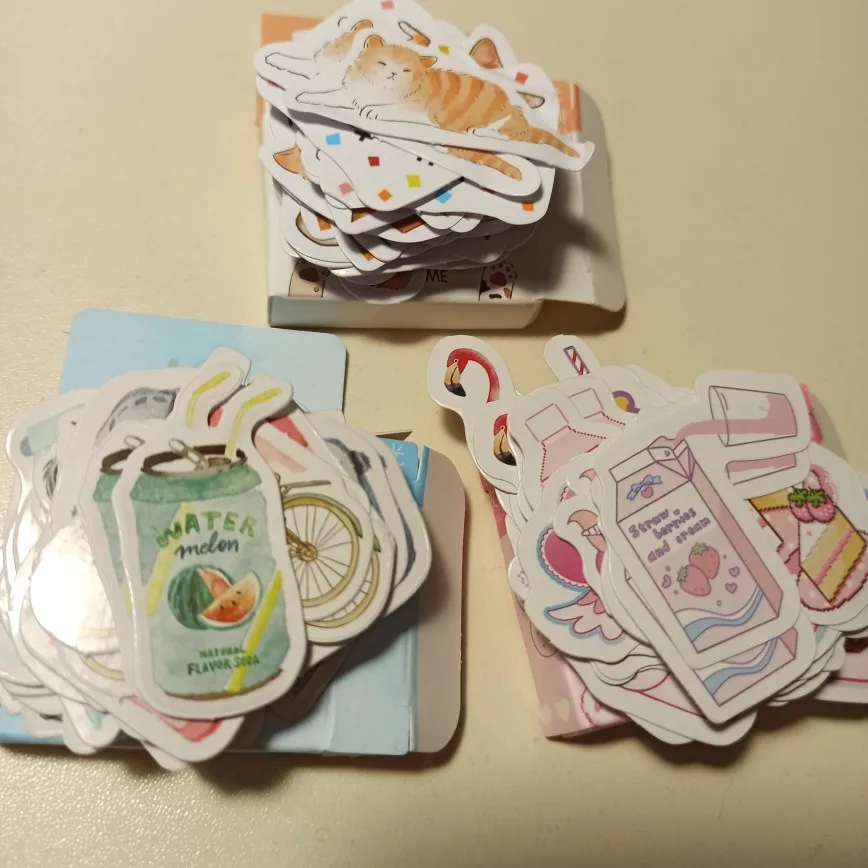 Очень милые наклейки, красивая упаковка. Всего их 45 штук, один дизайн наклейки повторяется два раза. Доставка в Краснодар заняла 16 дней. Немного огорчило то, что некоторый наклейки помялись, ибо коробочка маловата. В целом, меня все устроило, спасибо продавцу ( ˘ ³˘)♥︎