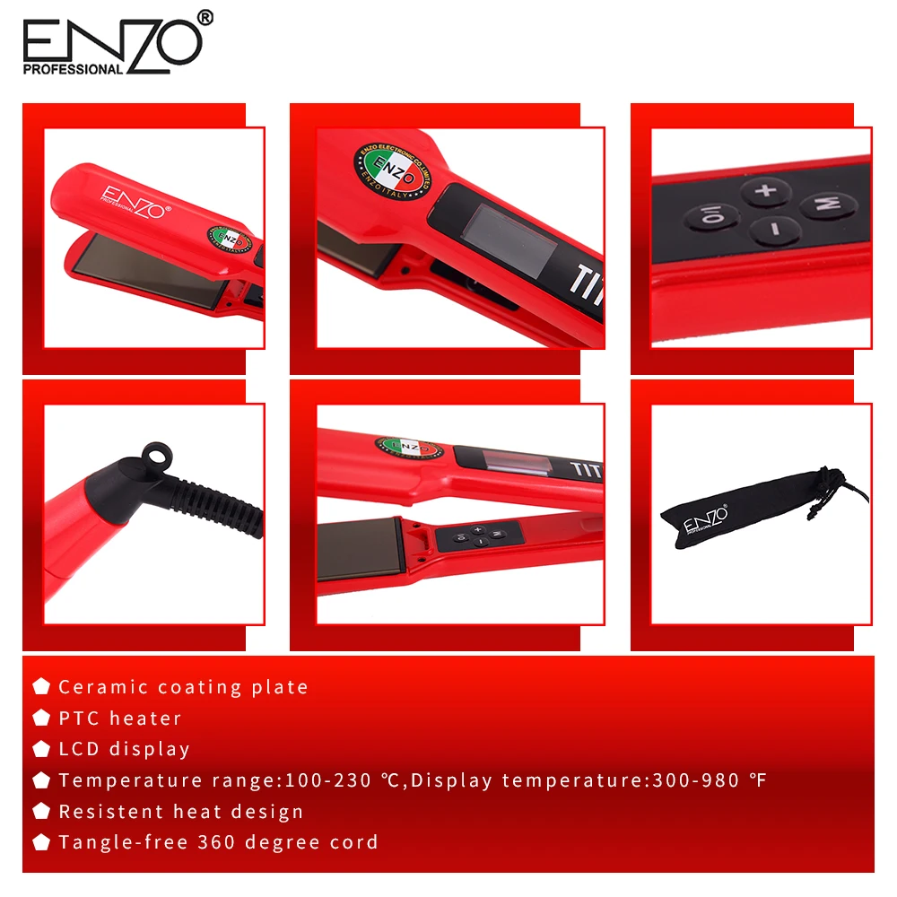 Профессиональный инфракрасный выпрямитель для волос ENZO, керамический электрический утюжок для завивки волос, быстрый нагрев, кератиновые Выпрямители