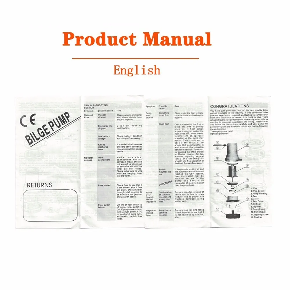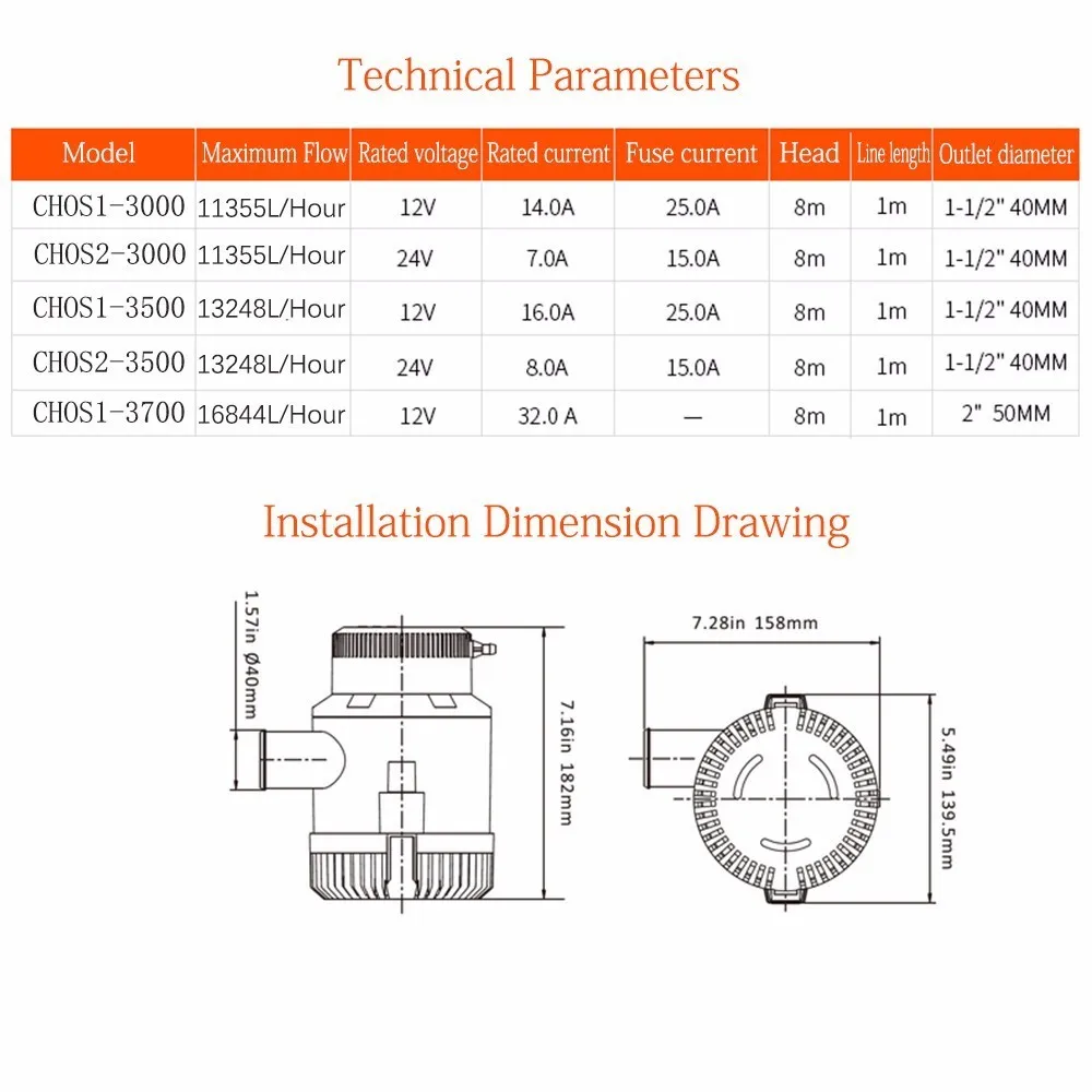 Трюмный насос 3500GPH, 12 В, 24 В постоянного тока, электрический водяной насос для лодок, аксессуары для лодок Marin водяного насоса для погружной лодки, 12, 24 В