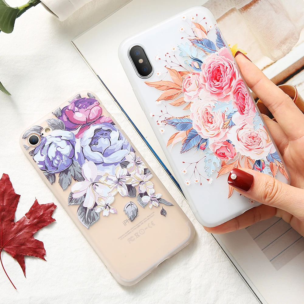 KISSCASE 3D Рельефный цветочный чехол для iPhone X XS XR XS Max Уль...
