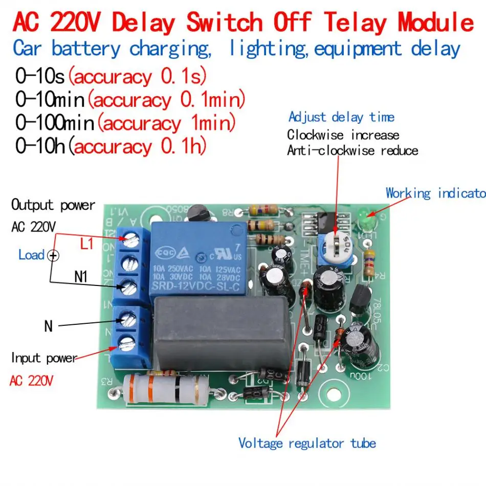 Модуль переключателя задержки с таймером, 220 В переменного тока, входвыход, модуль переключателя задержки с регулируемым таймером, плата выключения модуль переключения для таймера