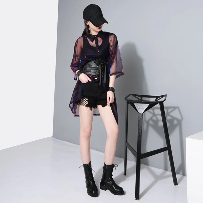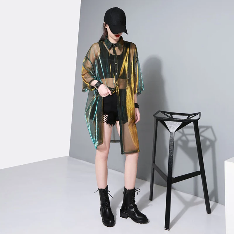 Женская голографическая одежда, летняя одежда с голограммой, Радужн...