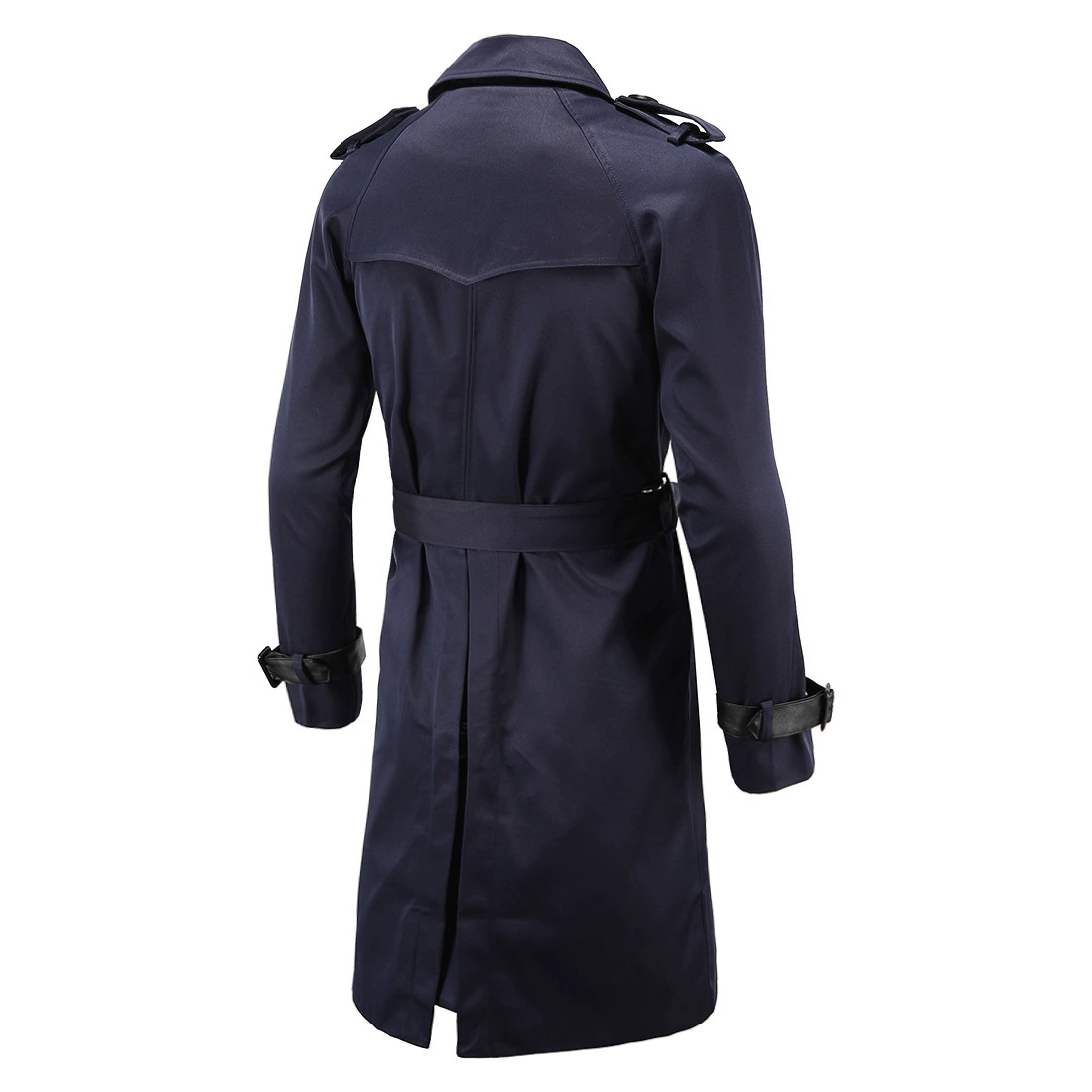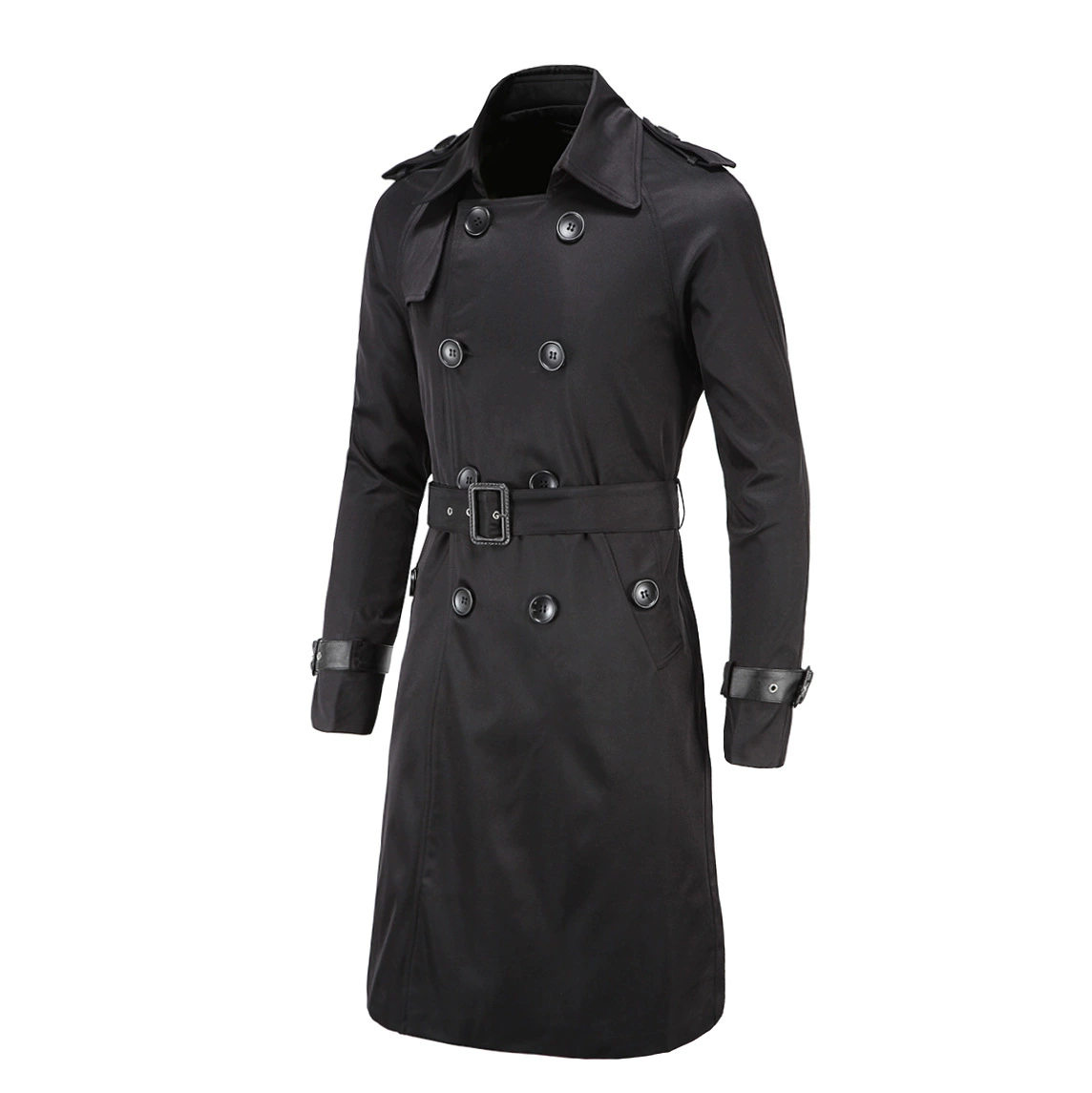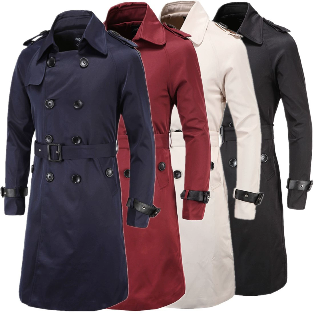 Мужской двубортный тренчкот, классический тренчкот в британском стиле, длинная приталенная верхняя одежда с регулируемым ремнем
