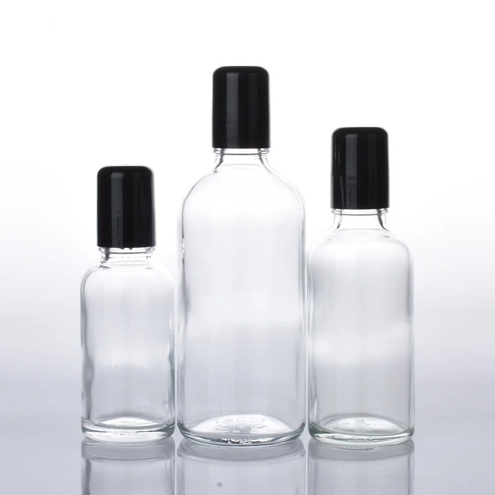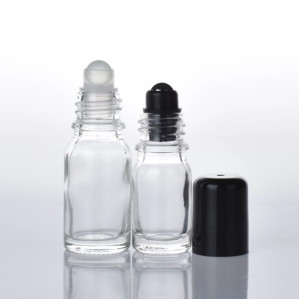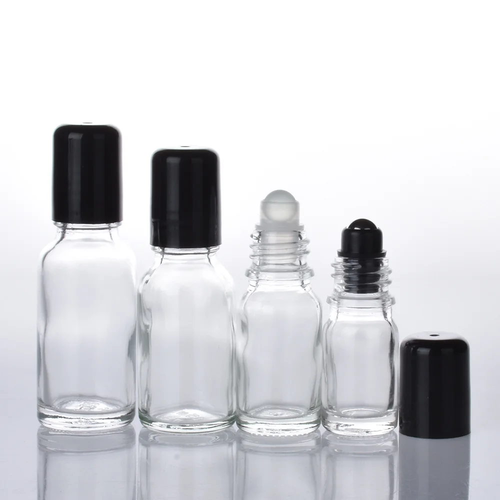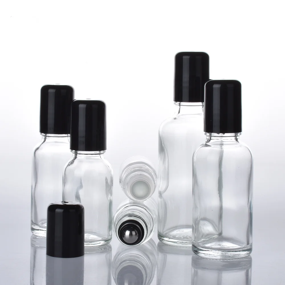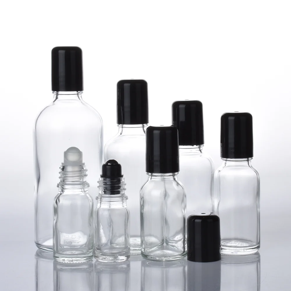 Пустая стеклянная бутылка эфирного масла, 12 шт.лот, 5 мл, 10 мл, 15 мл, 20 мл, 30 мл, 50 мл, 100 мл, с черным металлическим роллоновым косметическим контейнером