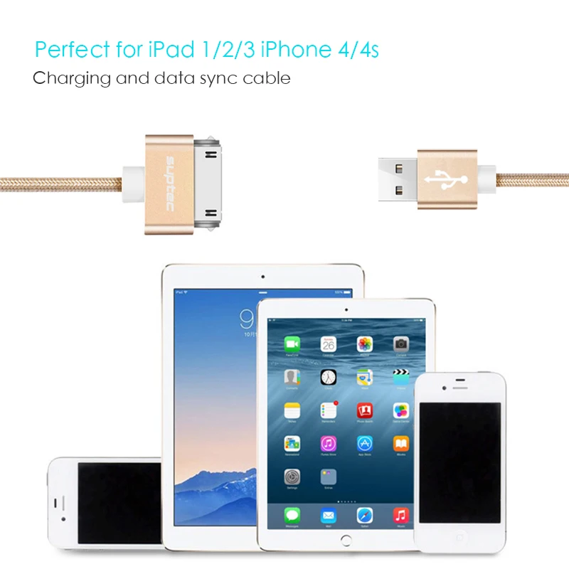 USB-кабель SUPTEC для iPhone 4 4s 3GS iPad 2 3 iPod Nano touch, прочный, быстрая зарядка, 30-контактный оригинальный адаптер, зарядное устройство, кабели передачи данных