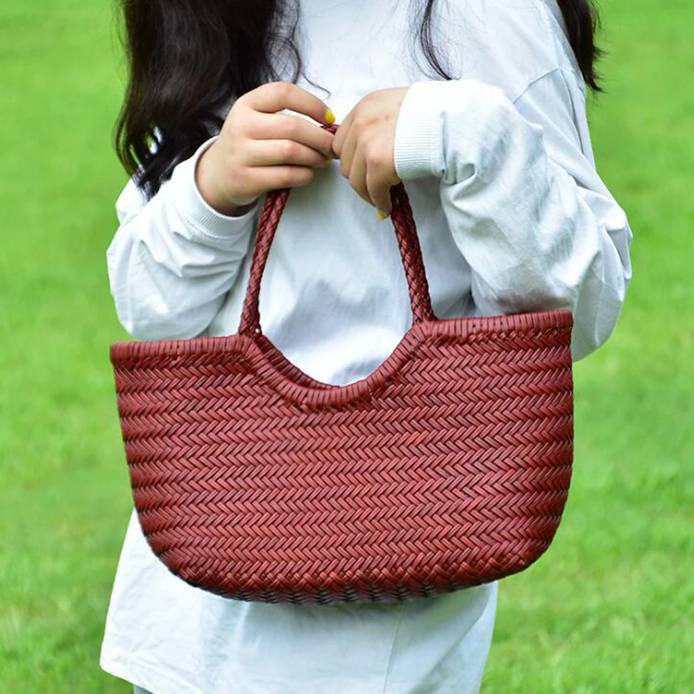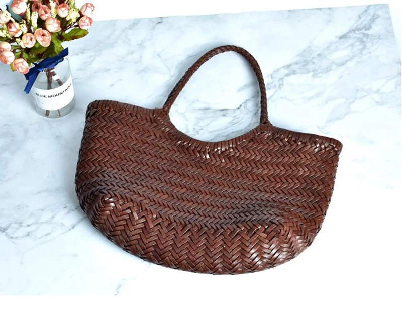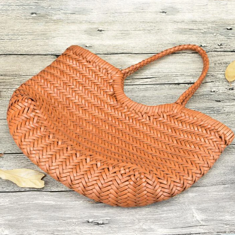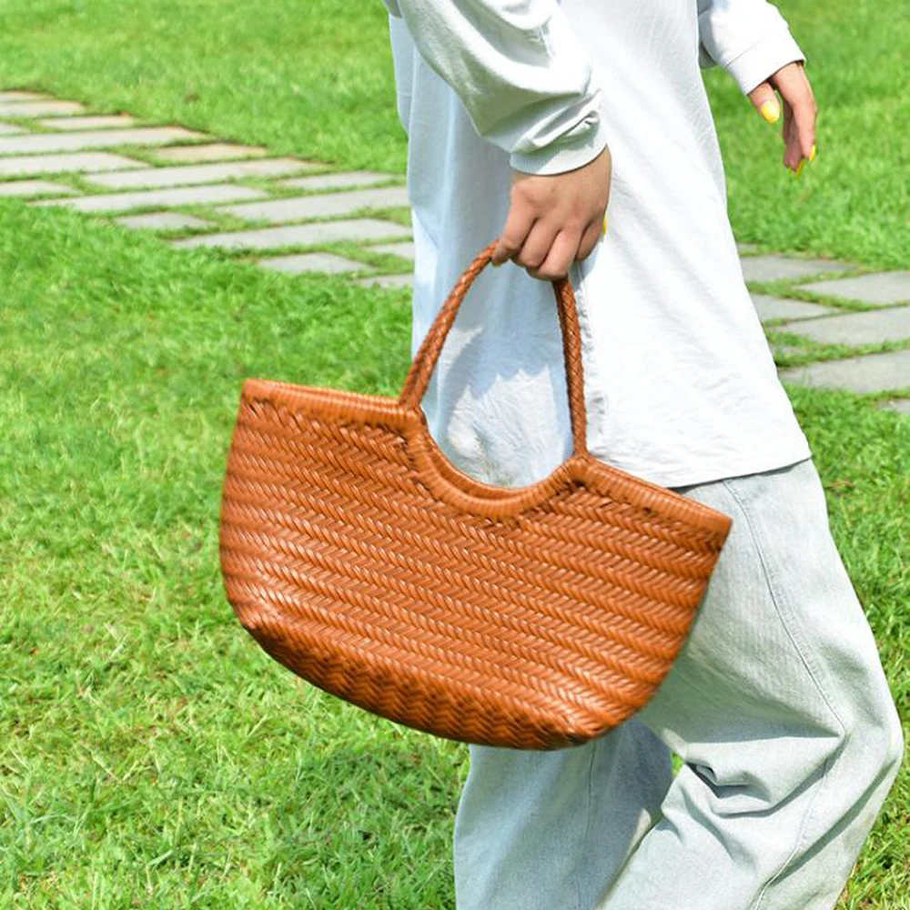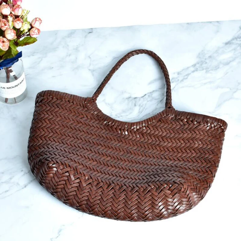 Тканые сумки, женская кожаная сумка через плечо, тканая Повседневная сумка для покупок, винтажная большая сумка-тоут, сумка из воловьей кожи, ручные сумки через плечо