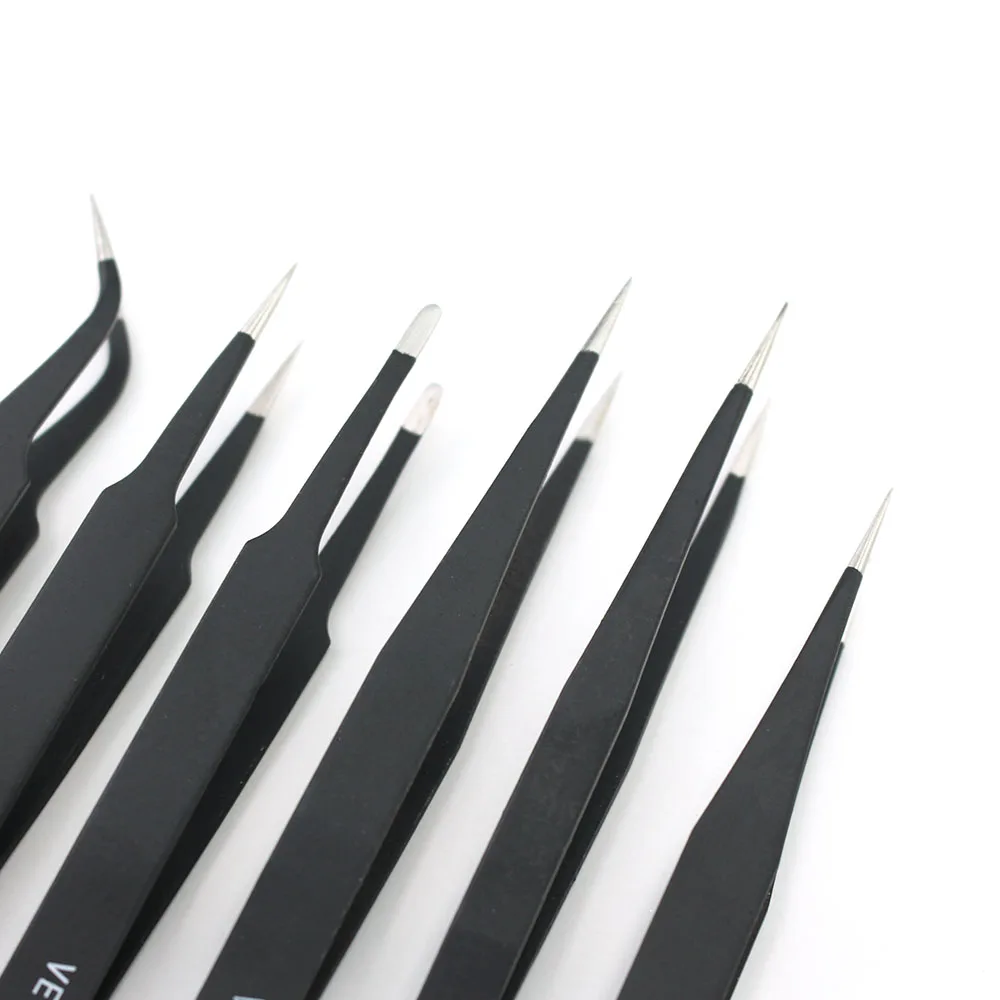 Черный пинцет, изогнутый, прямой, для наращивания ногтей, декоративный, точный, для извлечения омертвевшей кожи, маникюр, макияж, инструменты для ногтей